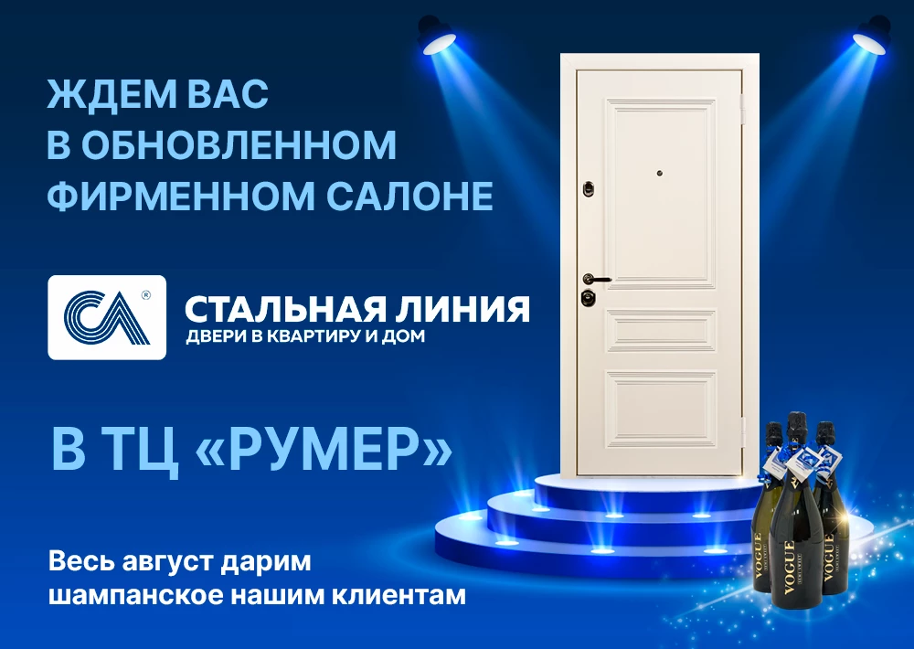 Мы подготовили для вас 50 новых выставочных образцов дверей и весь август дарим приятный бонус - бутылку игристого VOGUE.