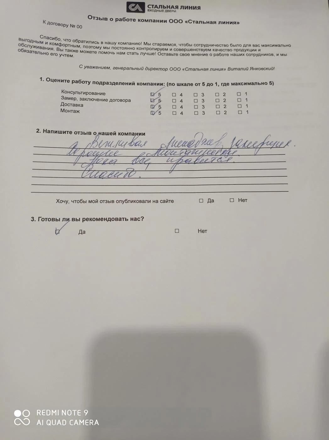 Вежливая менеджер, замерщик. Хорошие монтажники. Пока все нравится. Спасибо!