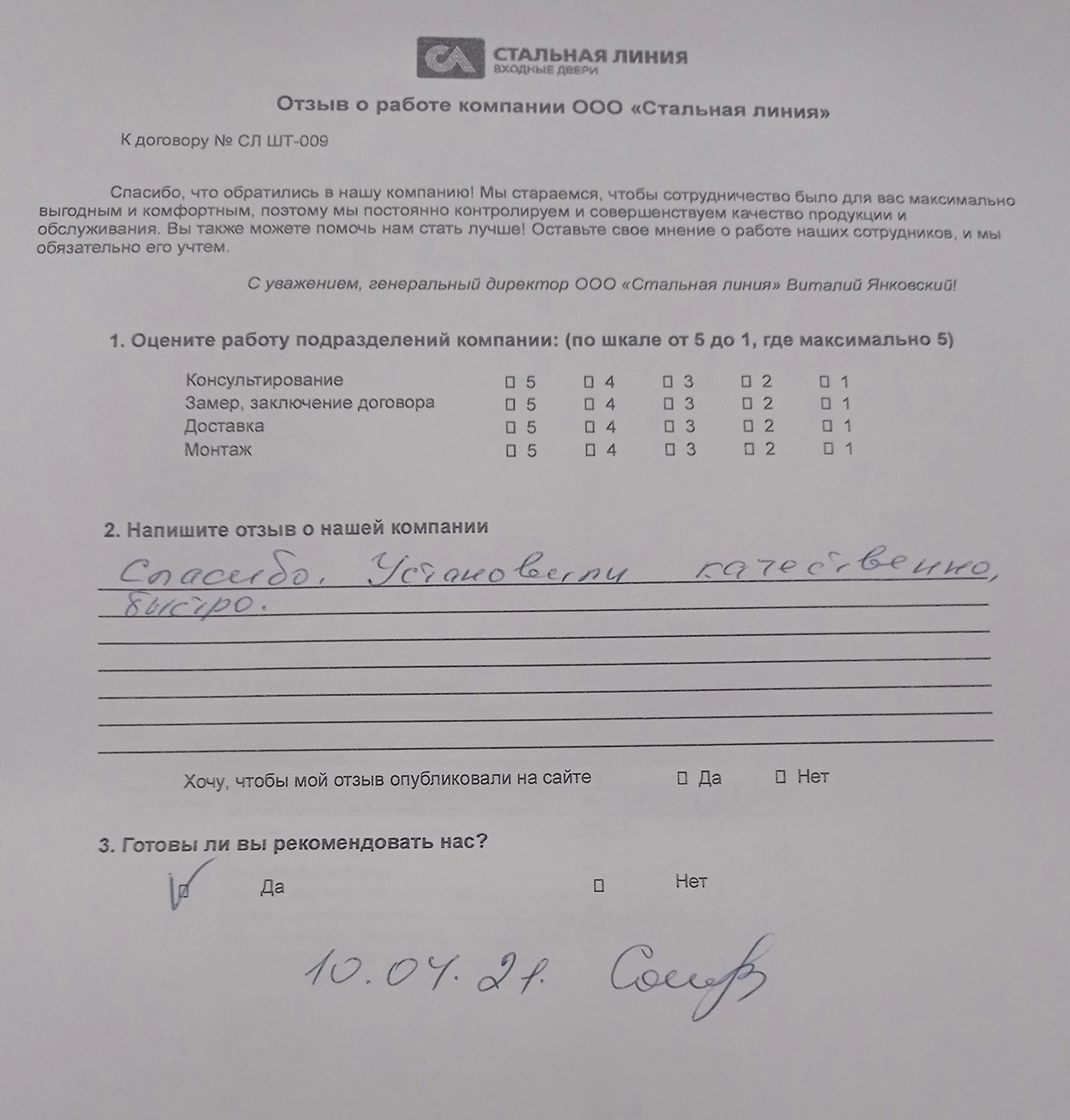 Спасибо. Установили качественно, быстро.
