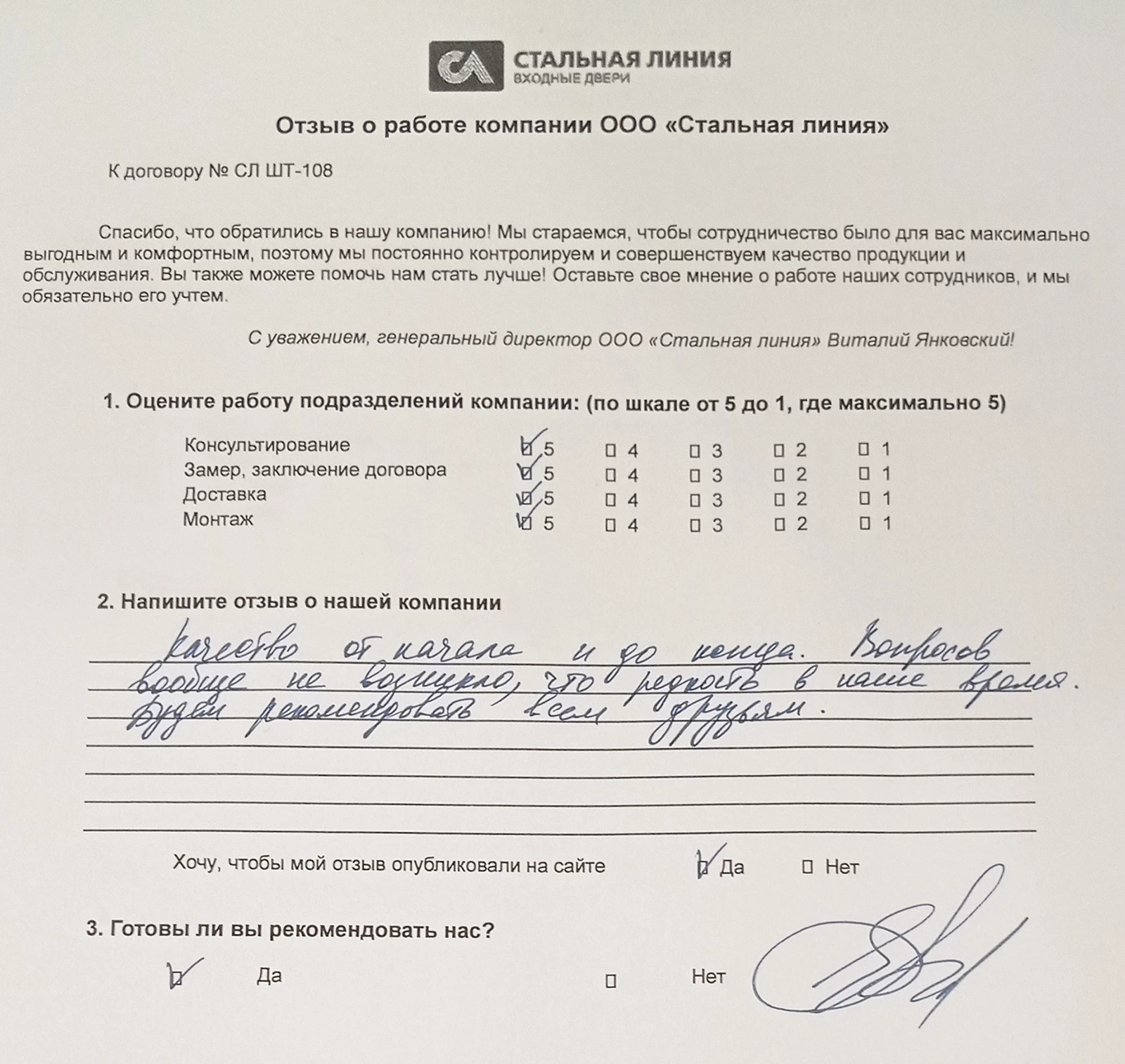 Качество от начала и до конца. Вопросов вообще не возникло, что редкость в наше время. Будем рекомендовать всем друзьям.