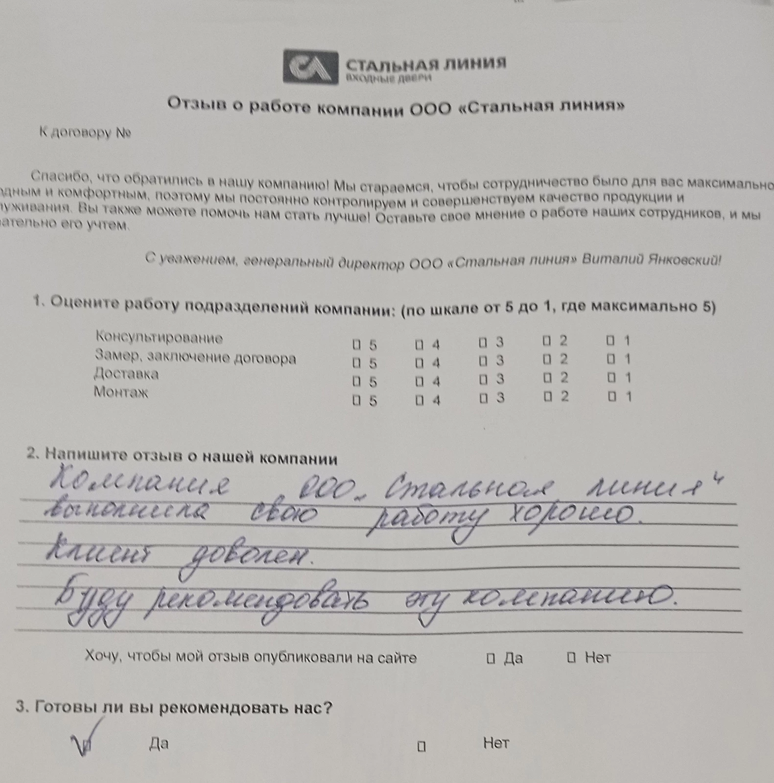 Компания ООО «Стальная линия» выполнила свою работу хорошо. Клиент доволен. Буду рекомендовать эту компанию.
