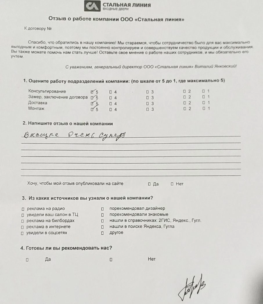 Отзыв нашего покупателя