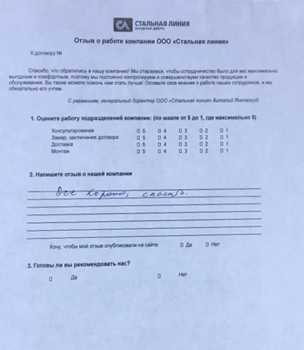 Компания ООО «Стальная линия» выполнила свою работу хорошо. Клиент доволен. Буду рекомендовать эту компанию.