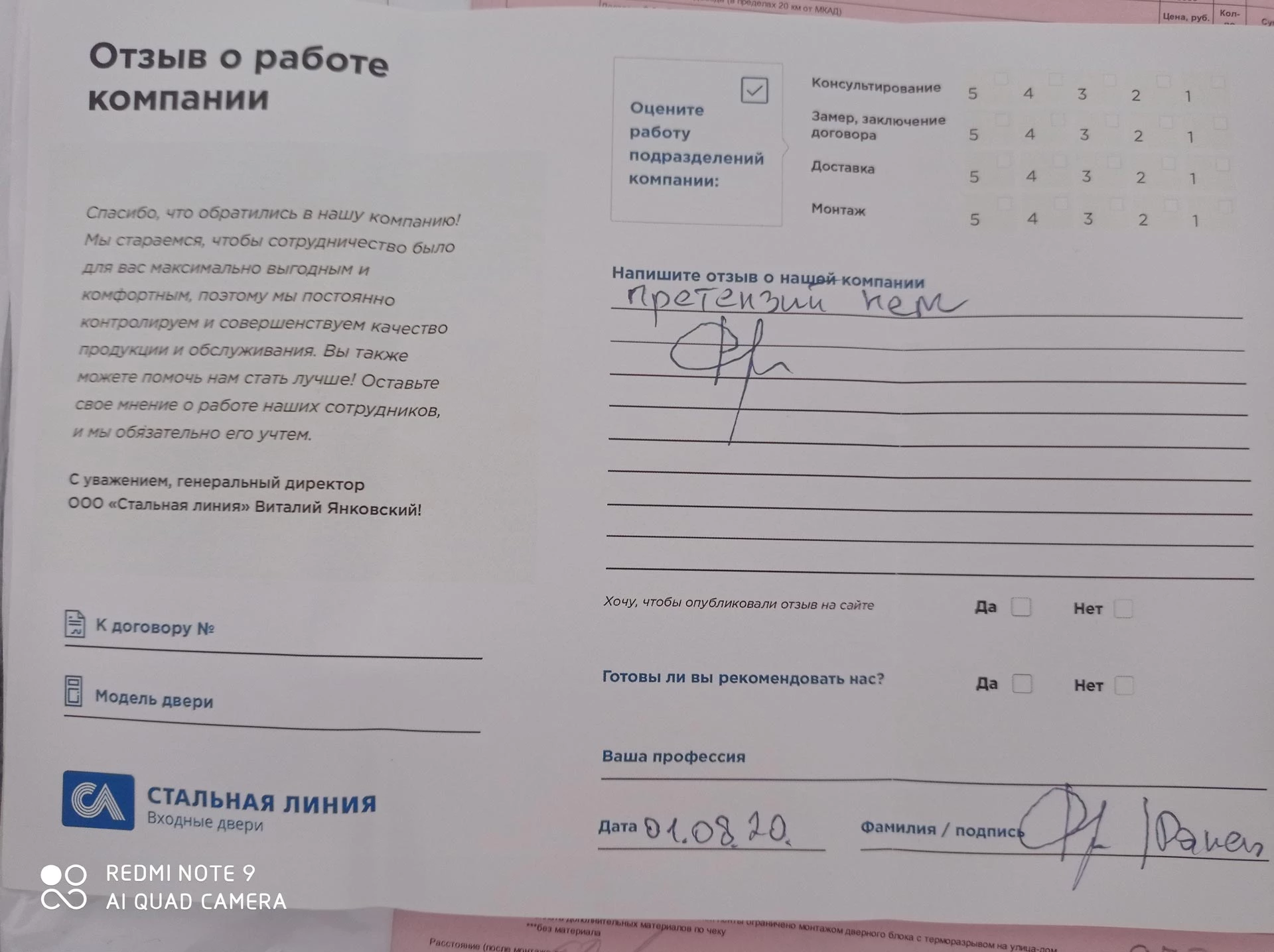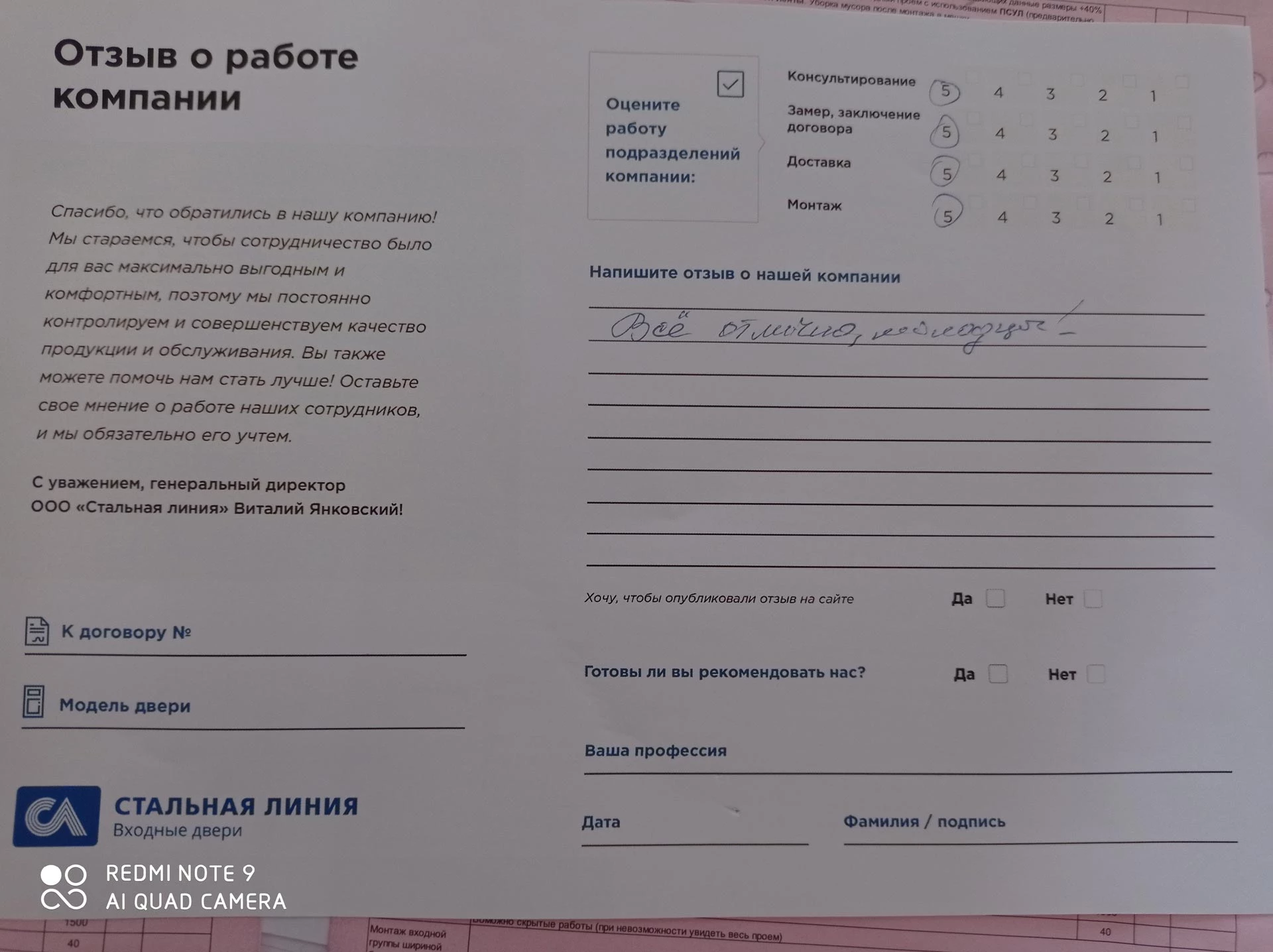 Хорошая компания. Двери качественные. Монтаж на отлично. Спасибо!!!