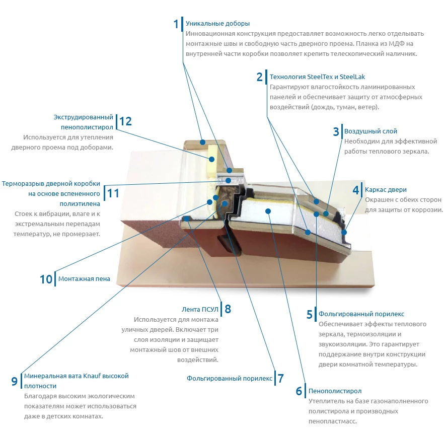 Дверь не промерзает насквозь, не оледеневает и остается невосприимчивой к конденсату.