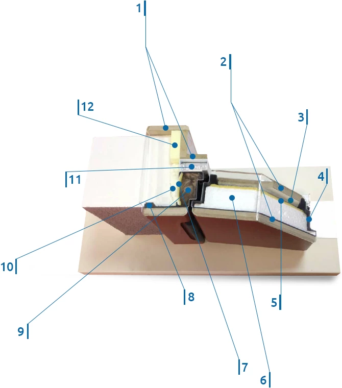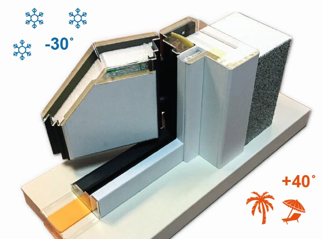 Технология терморазрыва, или разрыва температурных мостов, купирует передачу холода от внешней поверхности двери к внутреннему материалу: расположенная между ними изолирующая термовставка предотвращает образование мостов холода.