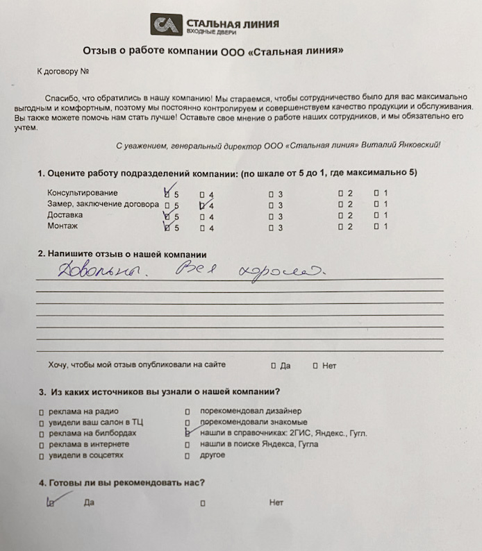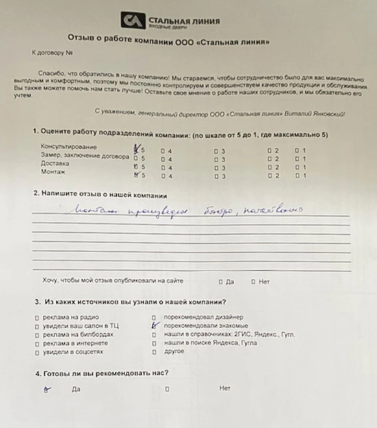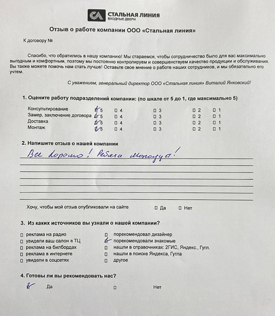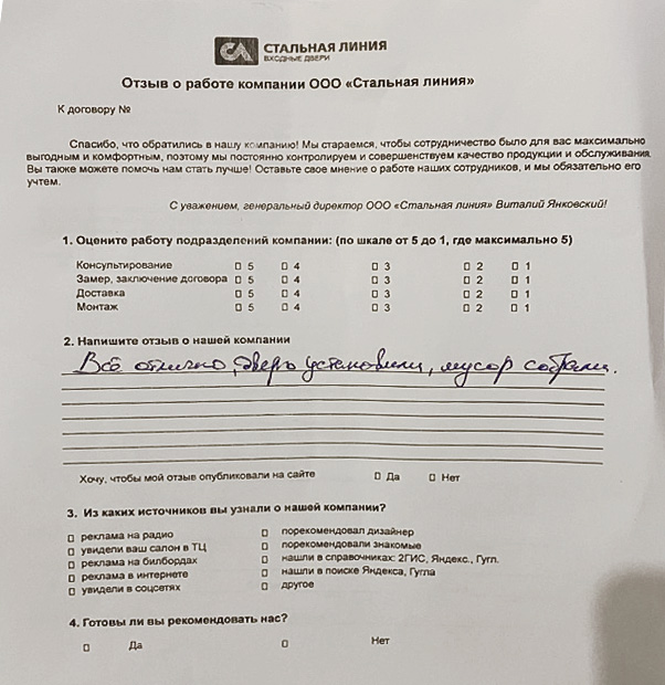 Приобретали у нас дверь? Вам всё понравилось? Оставьте отзыв!